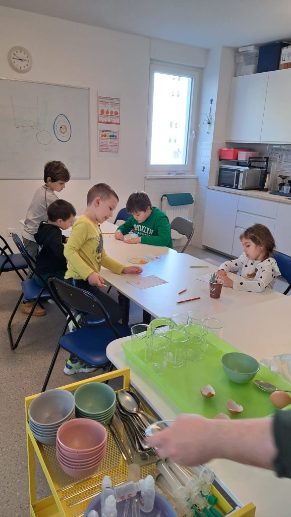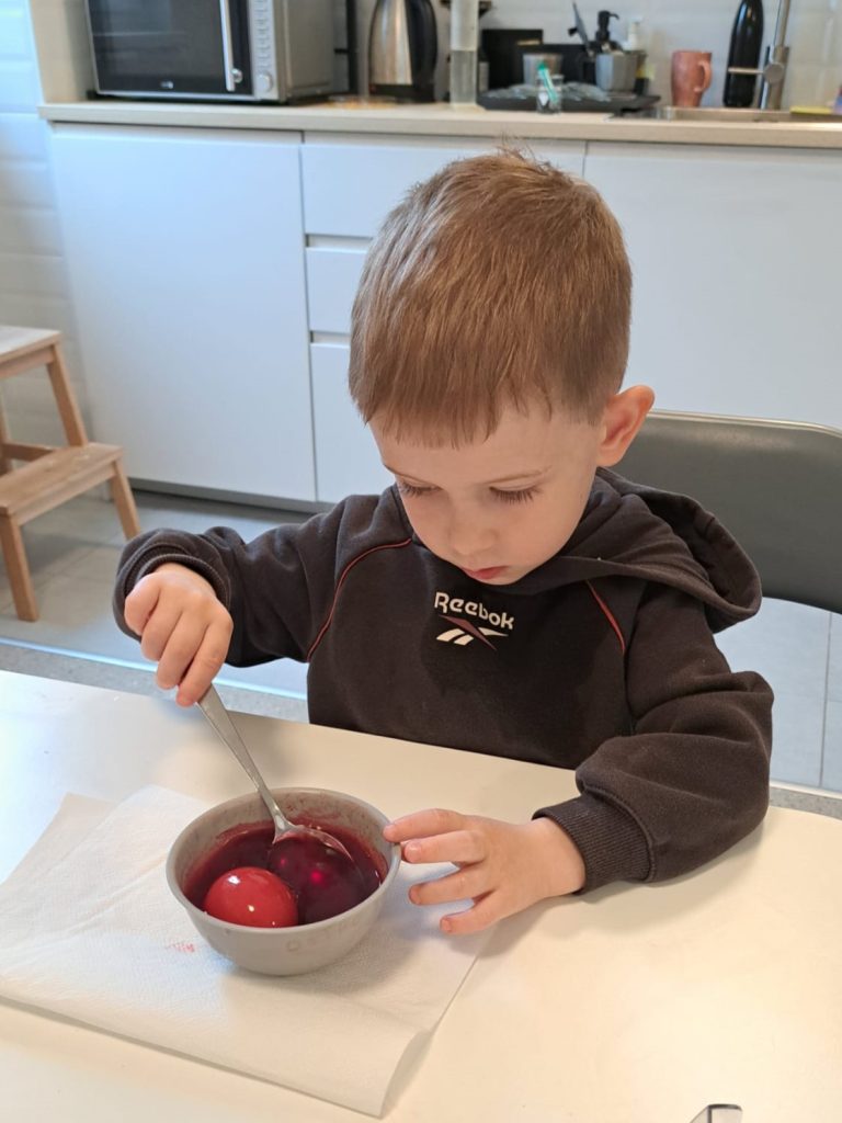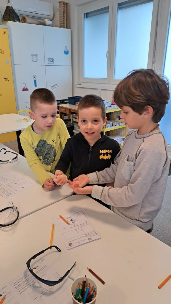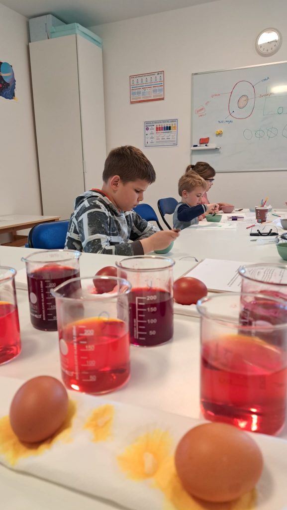 Kroz male znanstvene eksperimente istraživali smo strukturu jajeta, promatrali što se zapravo događa tijekom bojanja i isprobavali različite pristupe — od prirodnih do gotovih boja. Djeca su kroz praktičan rad postavljala pitanja, donosila zaključke i, ono najvažnije, učila kroz vlastito iskustvo.